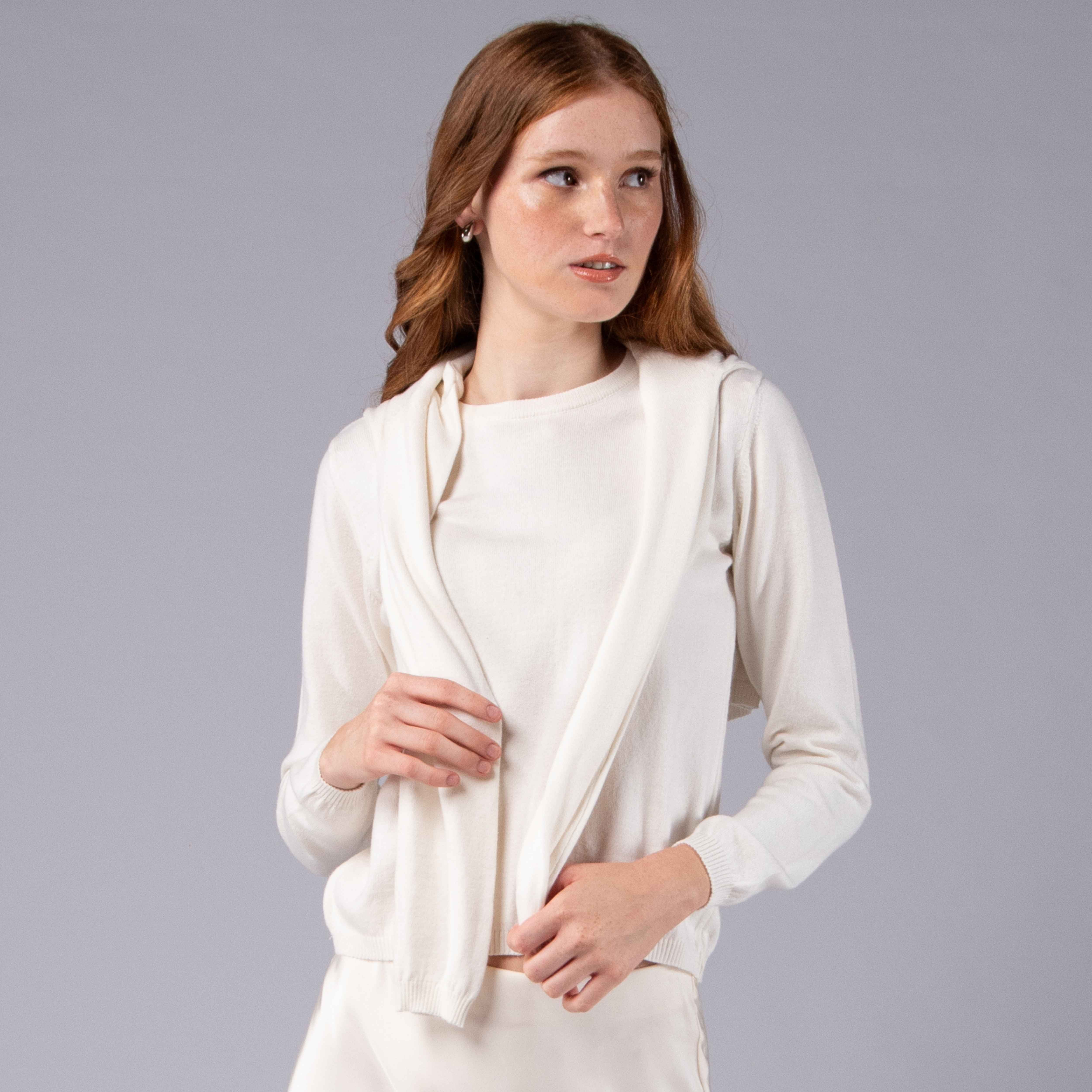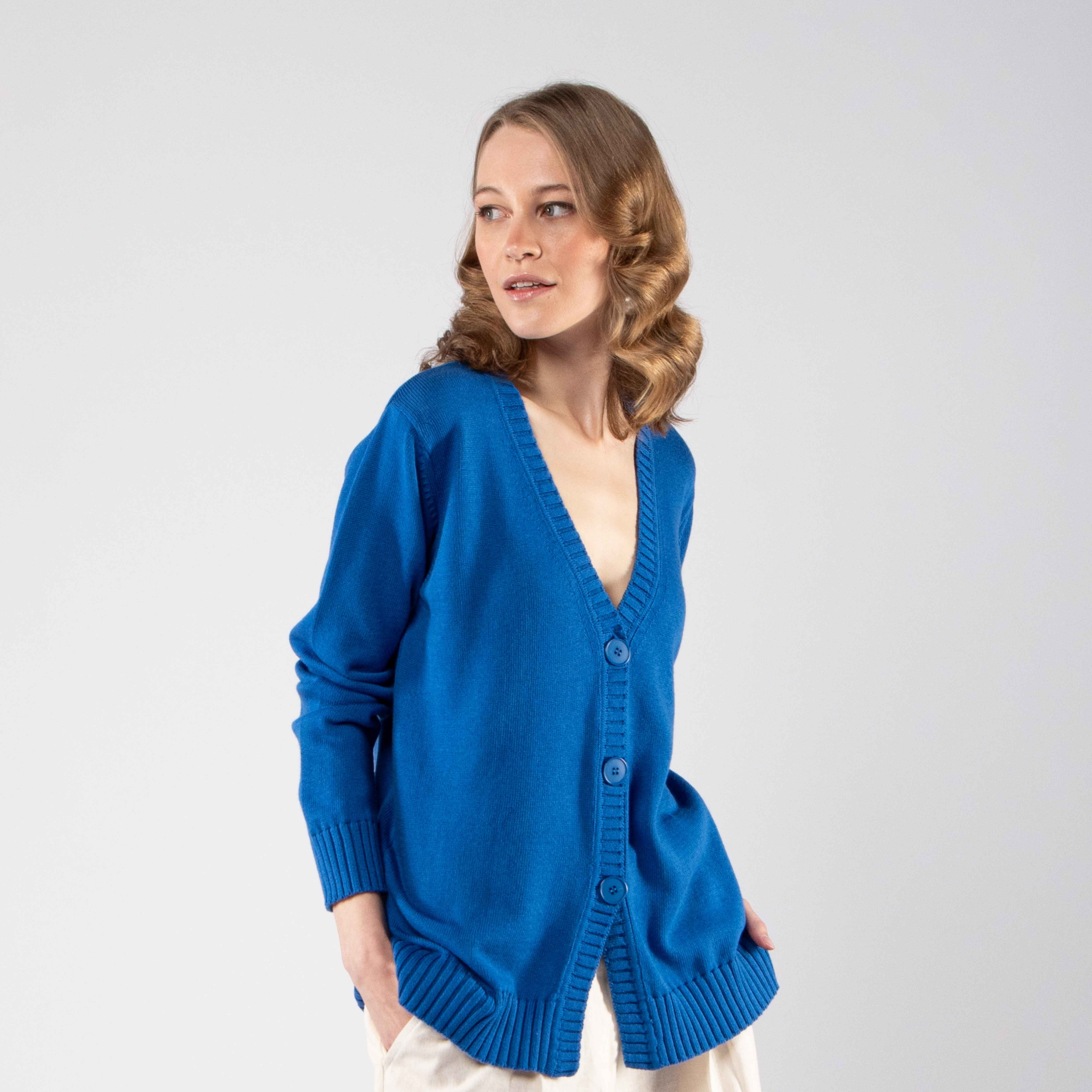 O cardigan é de um algodão muito macio, fica muito bem no corpo e a cor é muito bonita. Ótimo para a meia estação, para usar em ambientes mais quentes no inverno e para aquecer nas noites frescas de verão. Recomendo muito.