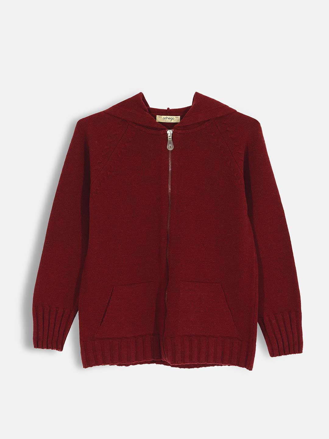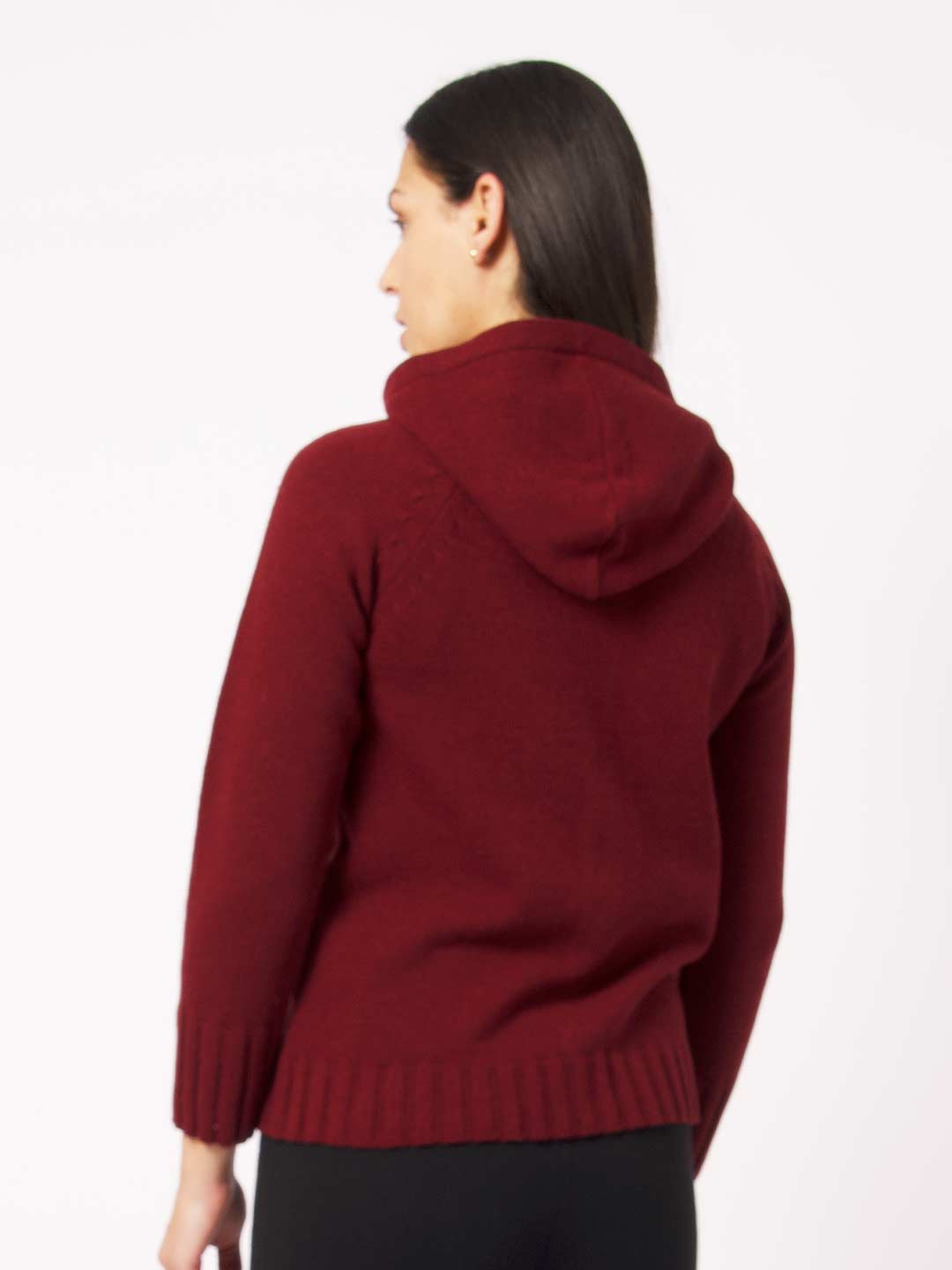 BordeauxKnitted Cardigan with zipper and hood with cuffs and ribbed waistband in high-quality lambswool. The slit pockets on the side evoke a sporty and practical style. The high percentage of sheep's wool gives it characteristics that only a natural raw material can offer. Light, warm, comfortable and soft, it's sporty, versatile and high quality. Made from Italian fibers, this jacket promises longevity. The model measures 175cm and weighs 63kg, wearing size M