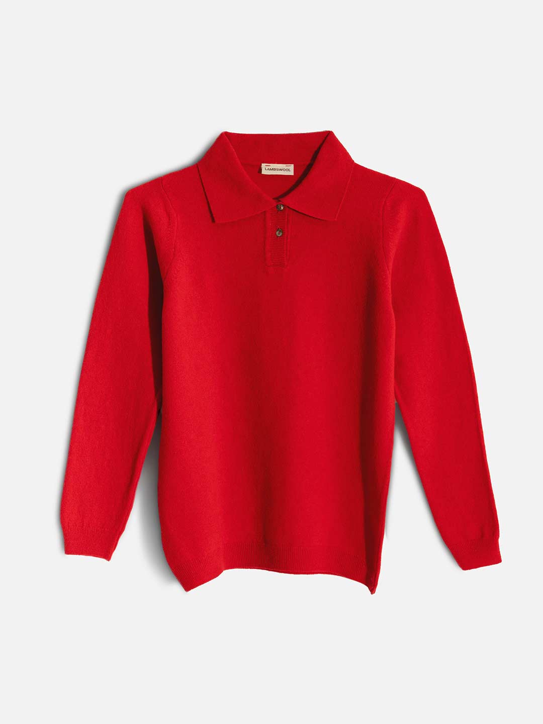 Knitted jersey polo shirt with 2 natural mother-of-pearl buttons in high-quality Lambswool. The high percentage of sheep's wool gives it characteristics that only a natural raw material can offer. Light, warm, comfortable and soft. A classic, versatile and high-quality basic. Made from Italian fibers, this sweater promises longevity. The model measures 175cm and weighs 63kg, wearing size S.