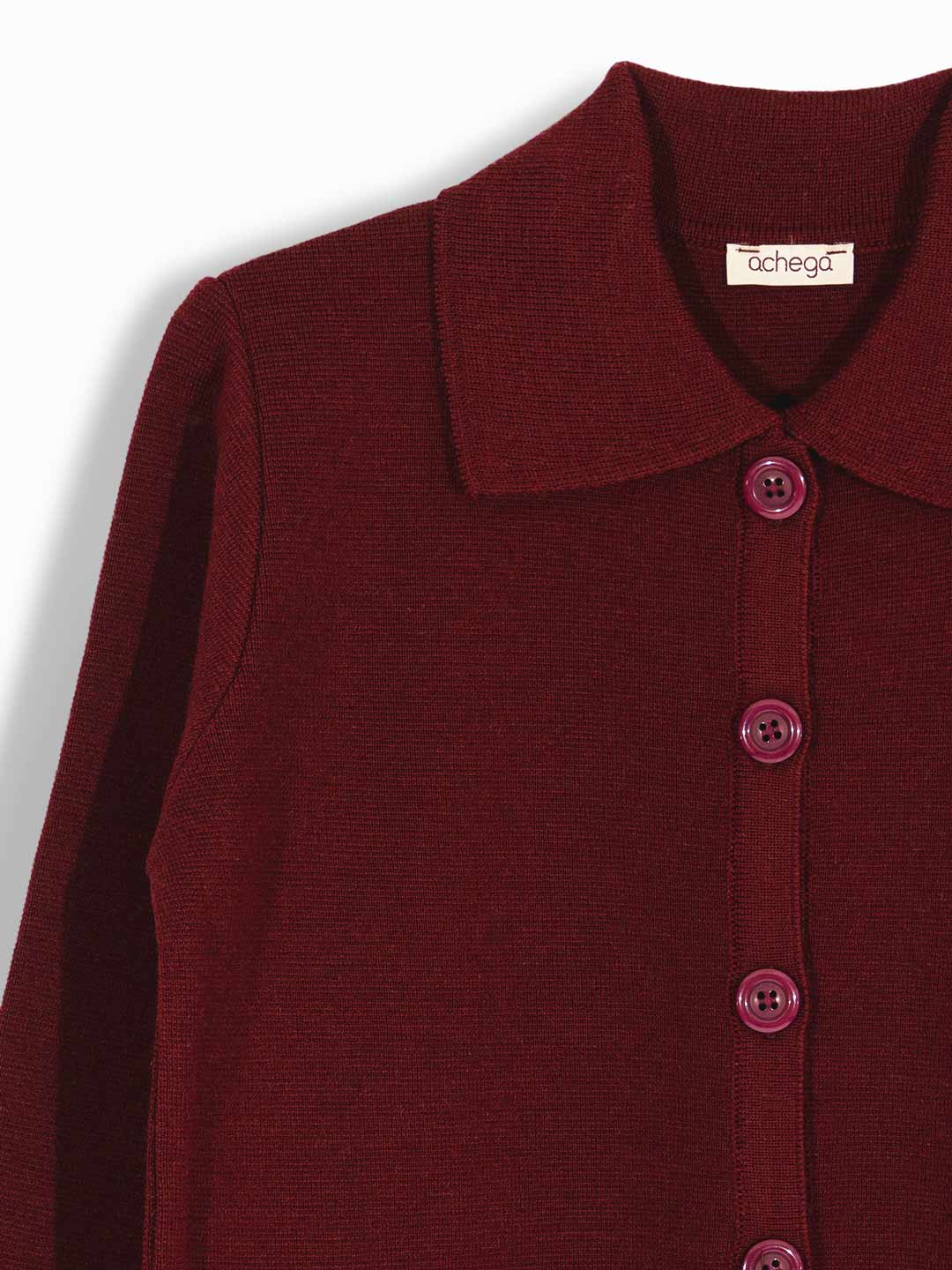 BurdeosAbrigo con cuello camisero de punto roma con dos bolsillos y botones acrílicos. De tacto sedoso, este cárdigan de punto romano merino y acrílico no renuncia a la calidad, pero resulta más práctico a la hora de cuidarlo a diario. Un básico de alta calidad, minimalista y versátil. Confeccionada con fibras italianas, esta chaqueta promete longevidad.