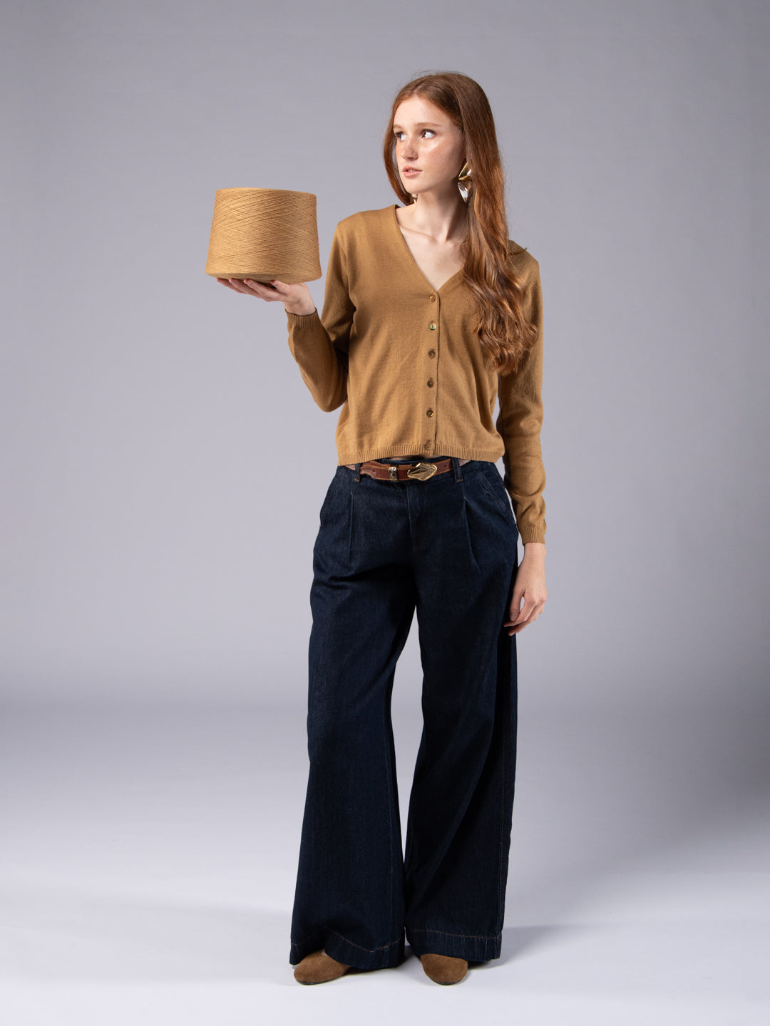 Miel de CamelloEste cárdigan camel miel con cuello en V nació del deseo de crear una pieza esencial que pudieras ponerte hoy, lucir dentro de un año y seguir luciendo impecable. Confeccionado con una mezcla perfecta de lana merina y algodón orgánico italiano y botones naturales de color nácar, este cárdigan es el básico atemporal que tu armario se merece. La modelo mide 175 cm, pesa 50 kg y lleva la talla S.
