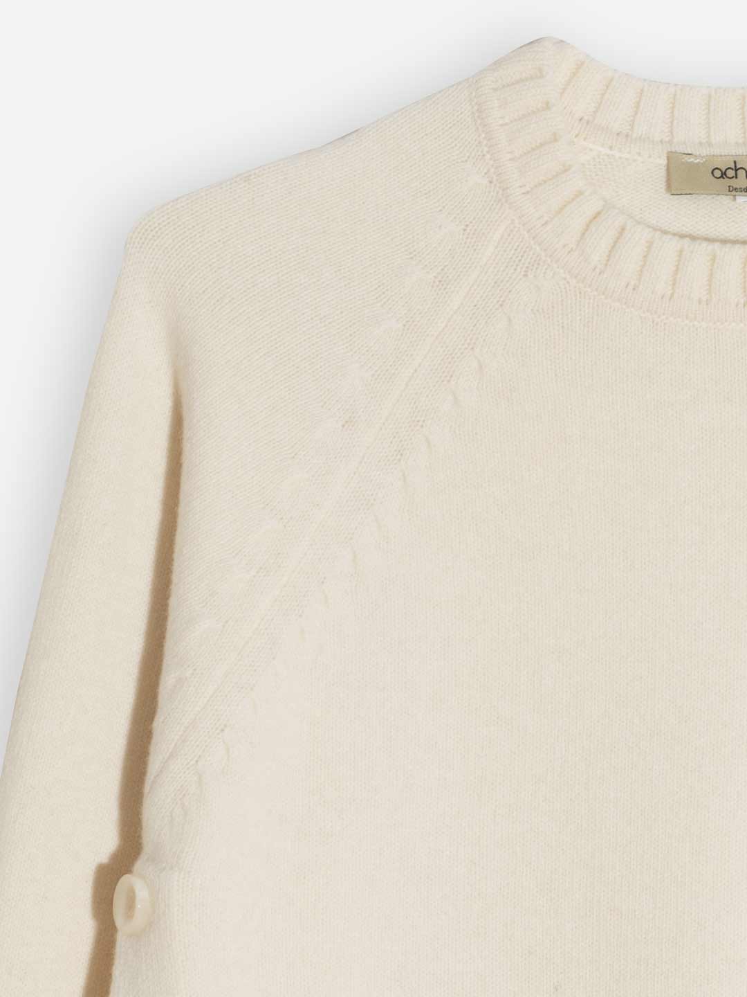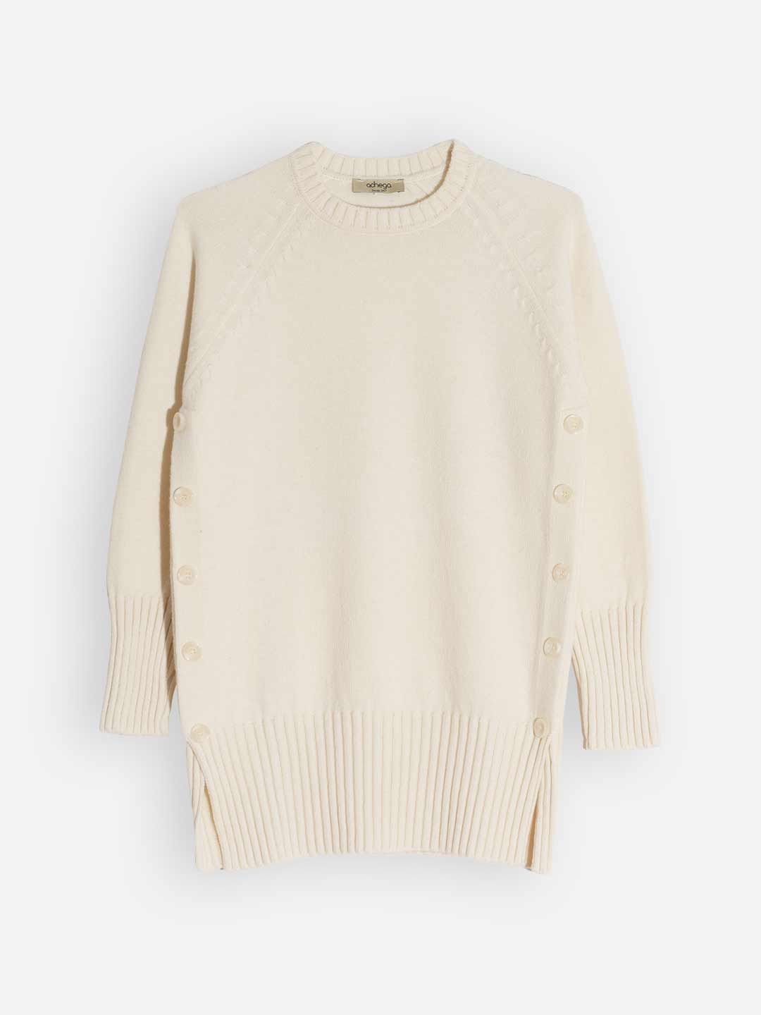 Branco PérolaCamisola com rachas e botões laterais, confecionada com lambswool de alta qualidade, garantindo conforto e calor excecionais. Cada peça é cuidadosamente elaborada para realçar a suavidade natural da lã, proporcionando uma sensação luxuosa ao vestir. Este estilo icónico combina funcionalidade com elegância, criando um visual distinto e sofisticado para quem procura estilo e conforto inigualáveis. Para um look mais solto opte pelo tamanho acima.