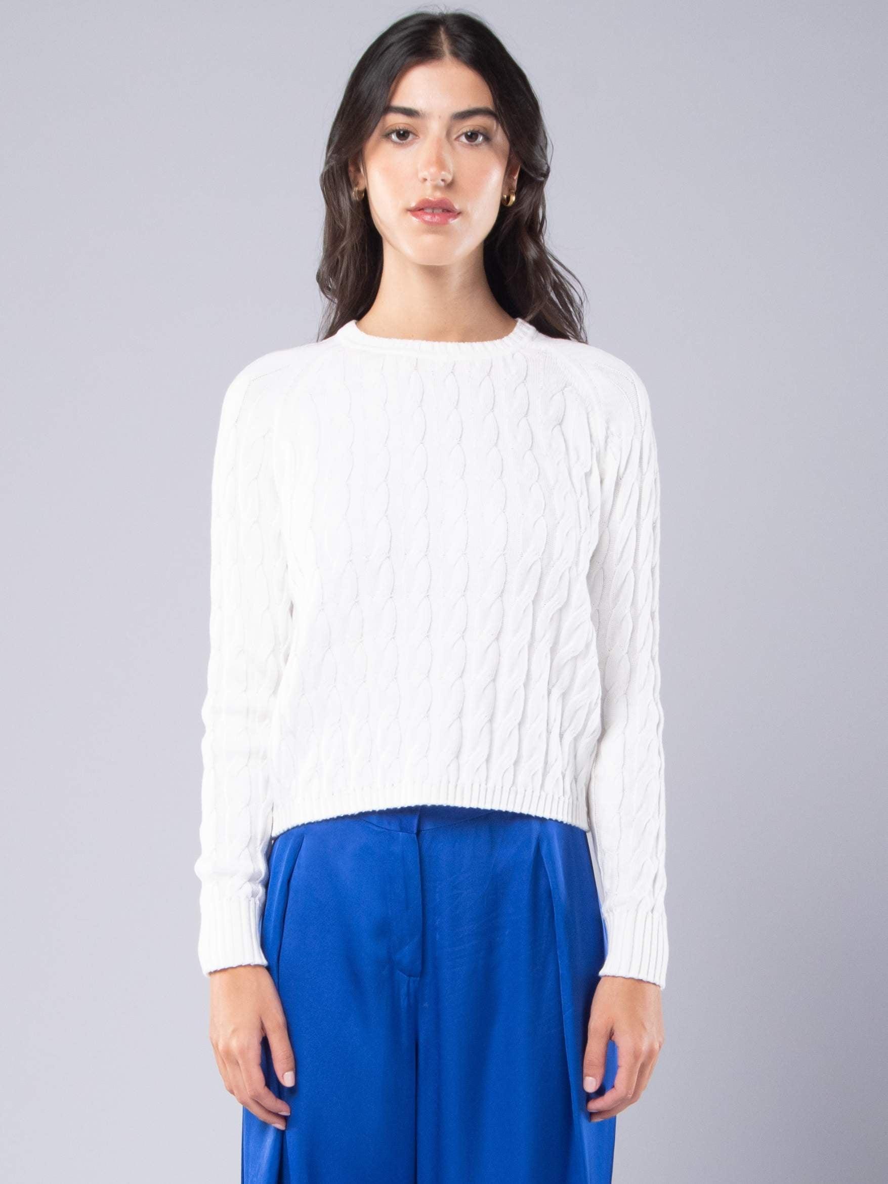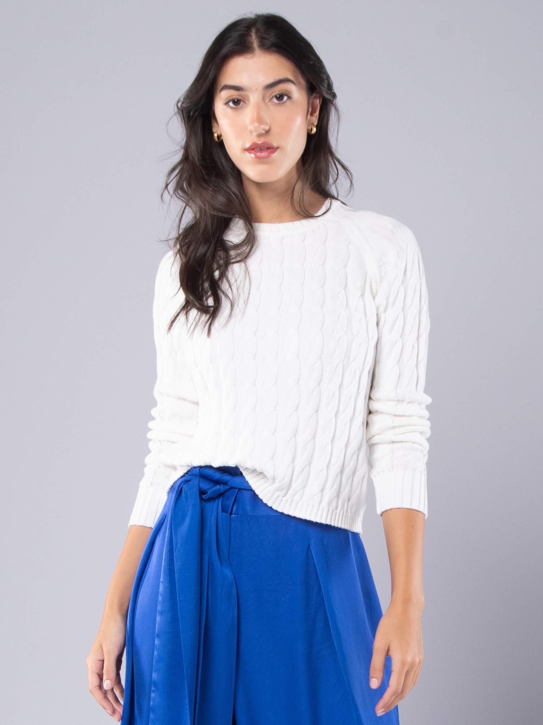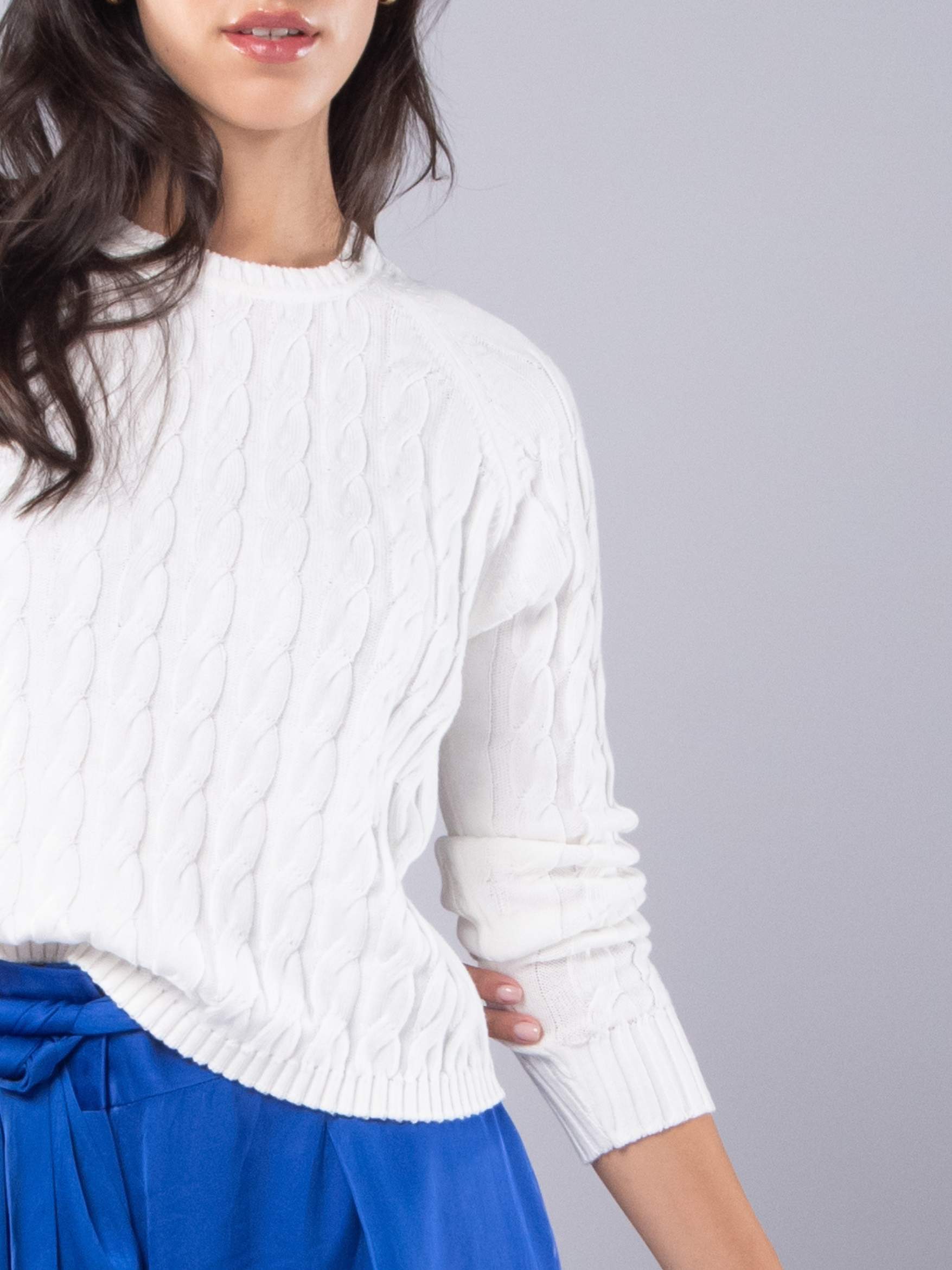 Camisola de Malha Branca com Tranças em Algodão Orgânico
