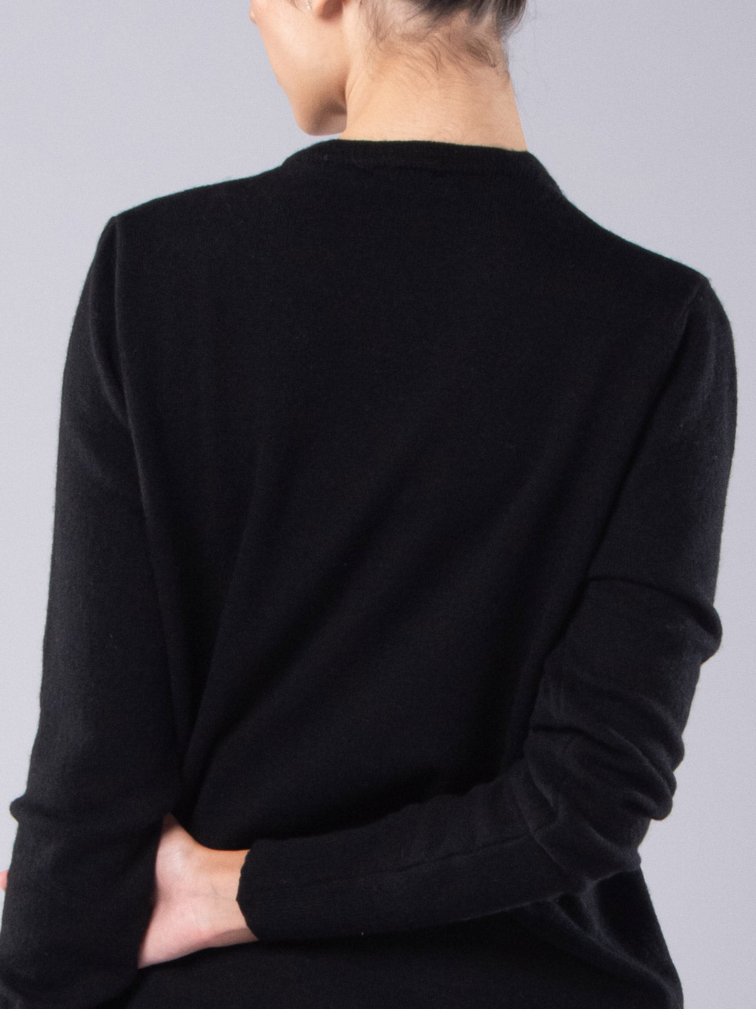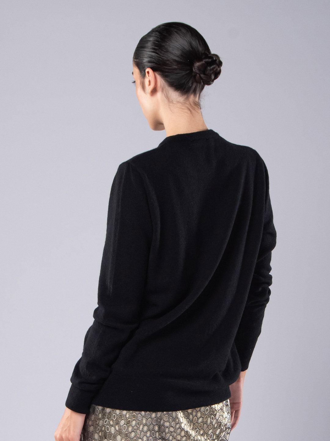 Camisola de Malha de Decote Redondo Caxemira Preto