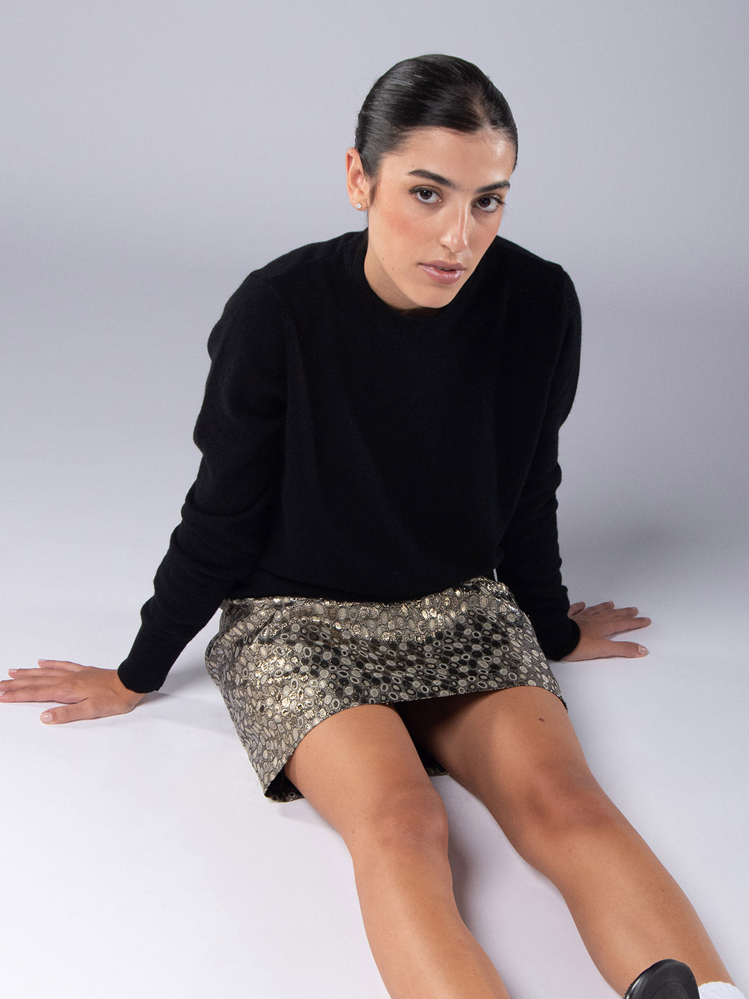 PretoApresentamos a nossa camisola de malha em preto um verdadeiro símbolo de conforto e sofisticação. Confeccionada com uma mistura de Caxemira, Seda e Lã, esta peça envolve o corpo com uma suavidade única, proporcionando uma sensação incomparável de bem-estar. Perfeita para os dias mais frios, a nossa camisola alia a leveza da Seda ao calor da Lã com um toque luxuoso da Caxemira. Um novo clássico minimal com punhos mais altos e cós para um design actual. Uma camisola de malha tão suave que pode ser usada diretamente sobre a pele. Aposte numa peça versátil e intemporal que se adapta tanto a visuais casuais como a ocasiões especiais.