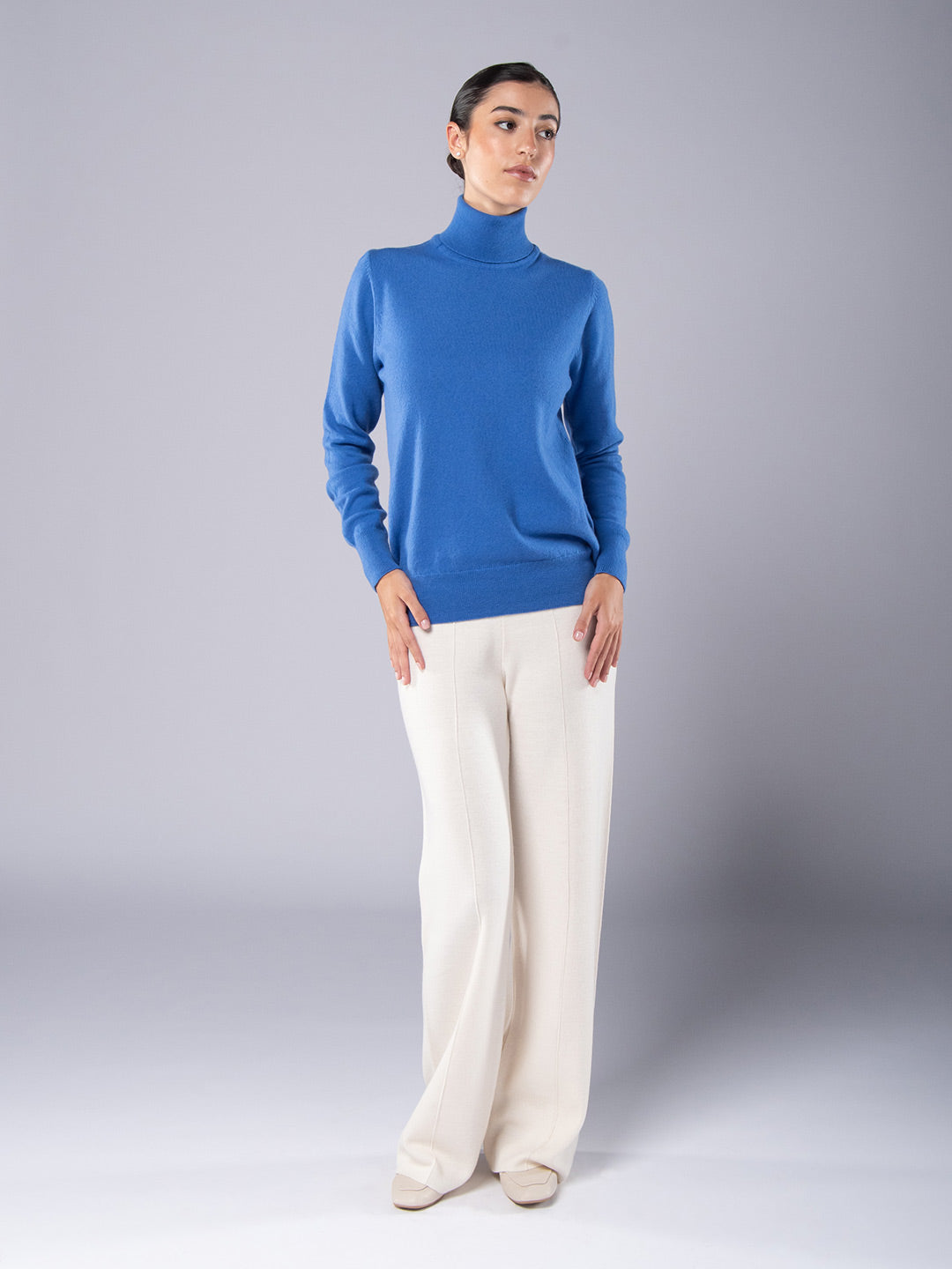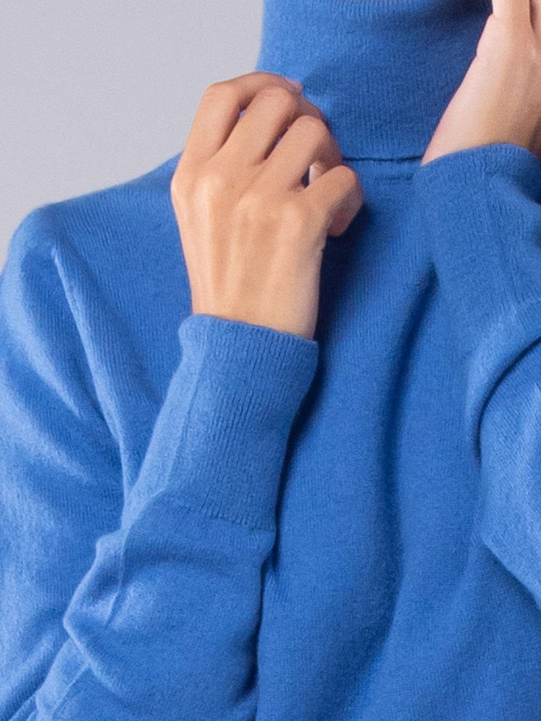 Camisola de Gola Alta Caxemira Azul Cobalto