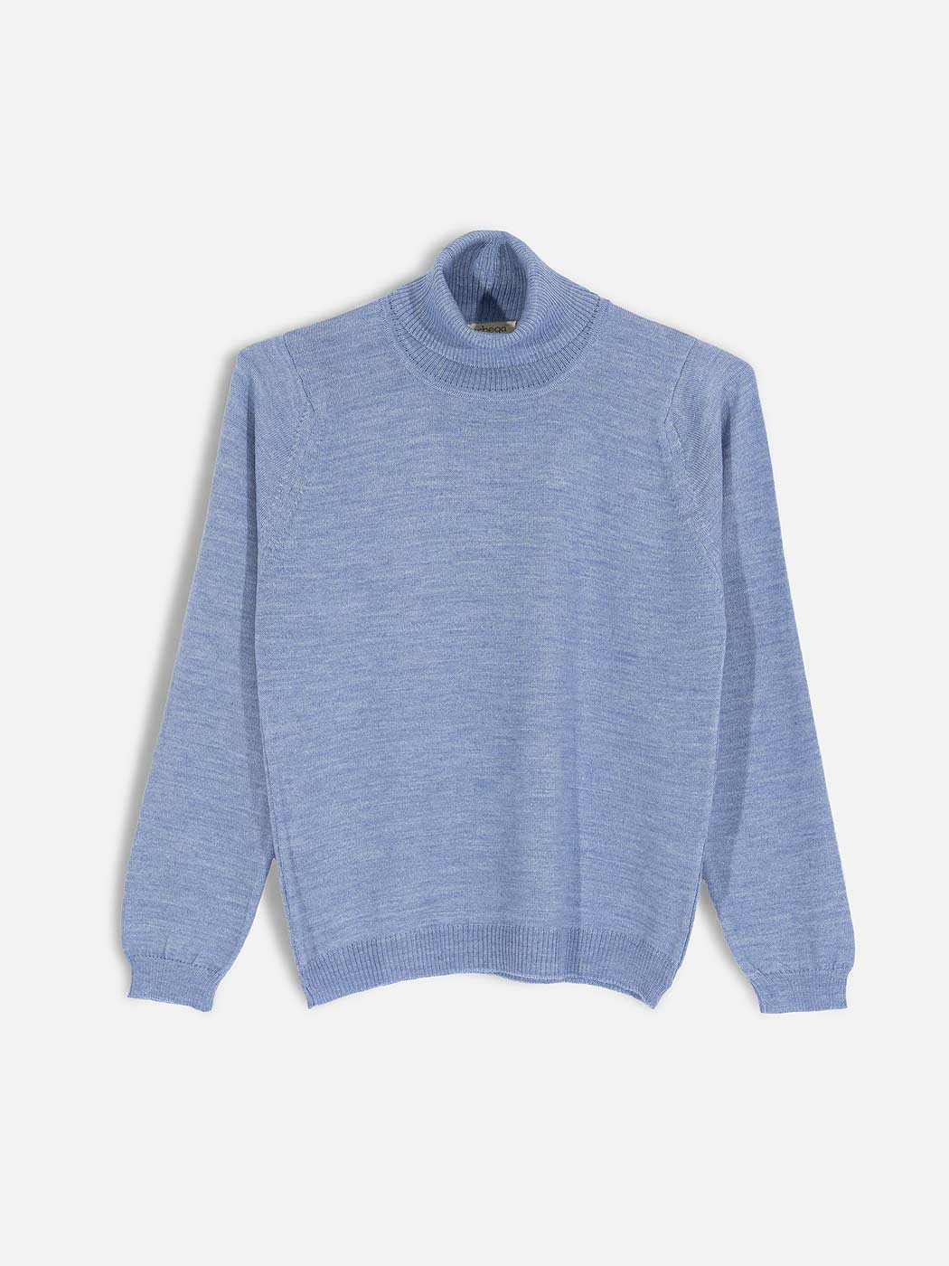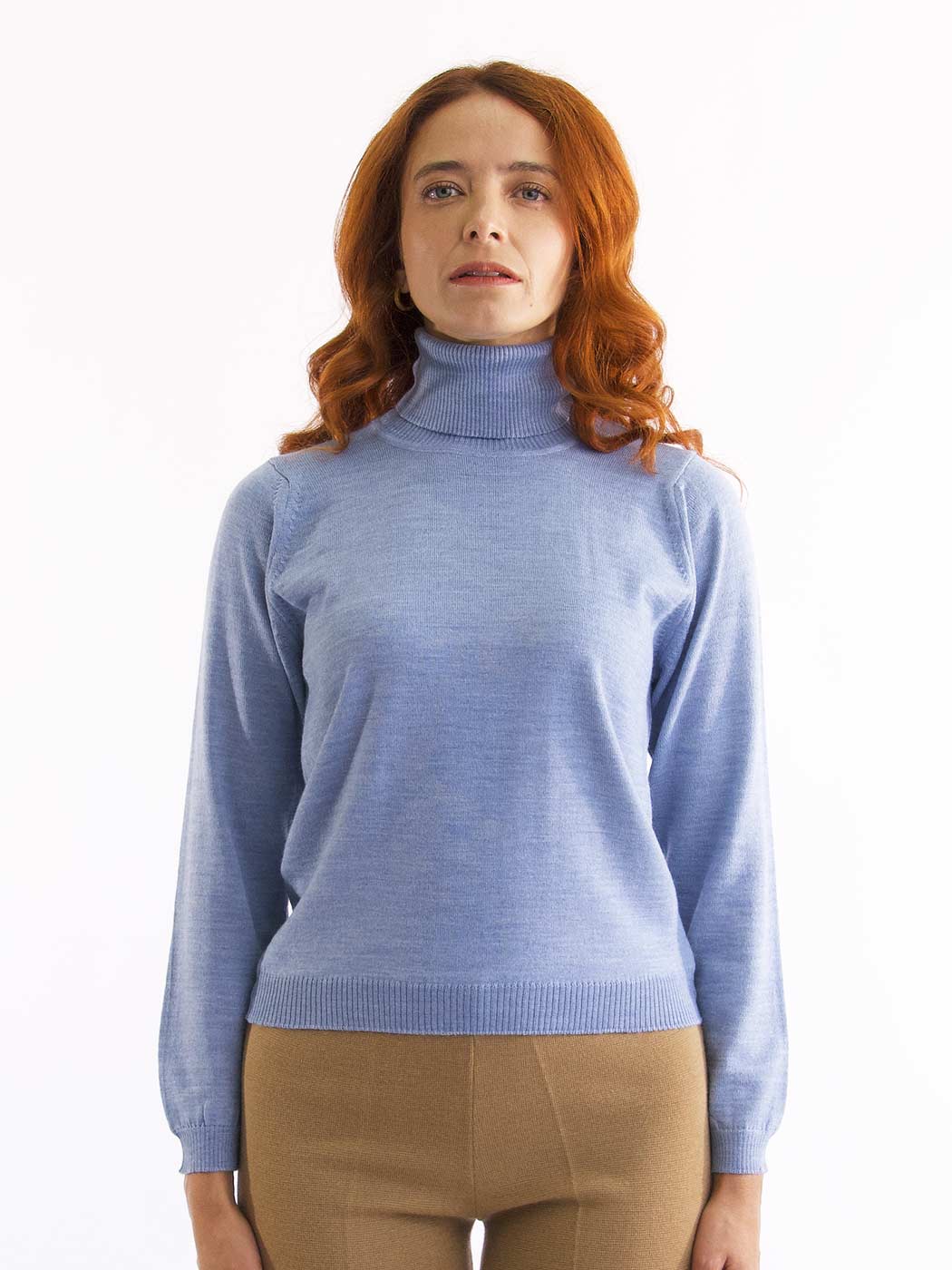 Camisola de Gola Alta em Lã Merino - Azul Bebé