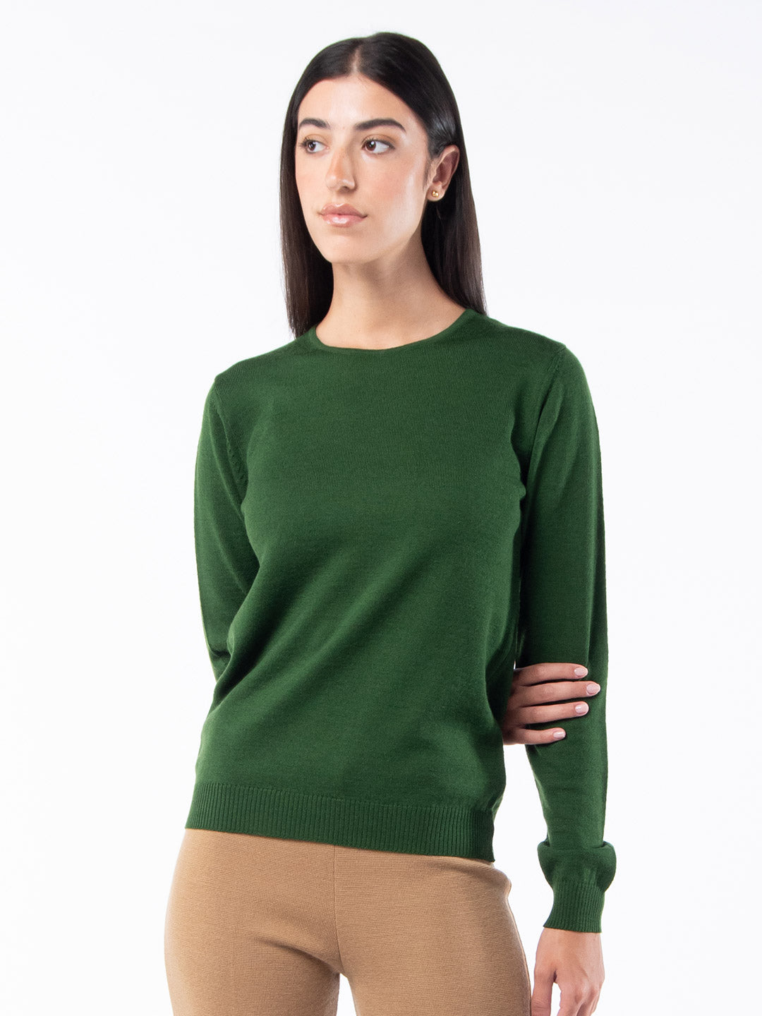 Camisola de Manga Comprida em Lã Merino - Verde Musgo