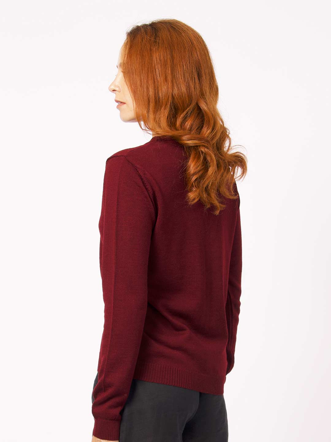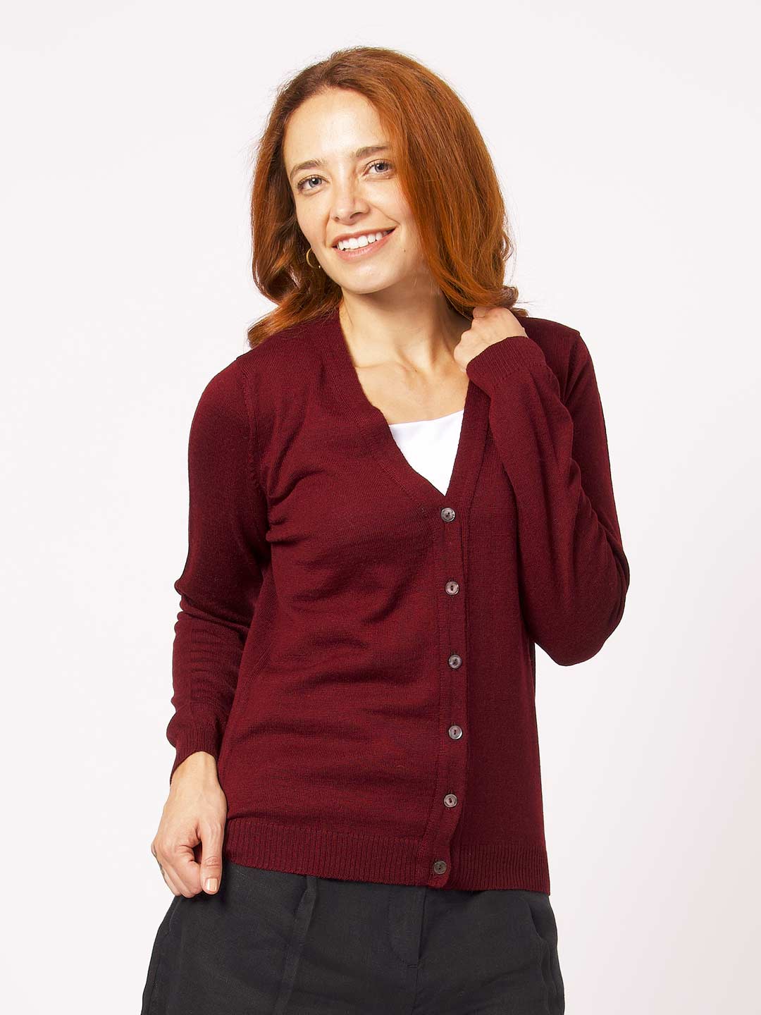 Casaco com decote em V com botões em madrepérola natural em merino de alta qualidade. Uma das maiores vantagens da lã merino é a sua hipoalergenicidade e regulação da temperatura corporal. Esta lã é naturalmente resistente a ácaros e outros alérgenos comuns que podem desencadear reações alérgicas na pele. Resistente e durável, um investimento de longo prazo. A modelo mede 168cm e pesa 50kg, veste o tamanho S.
