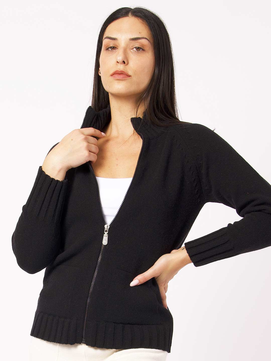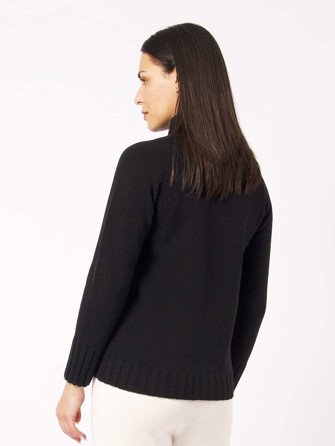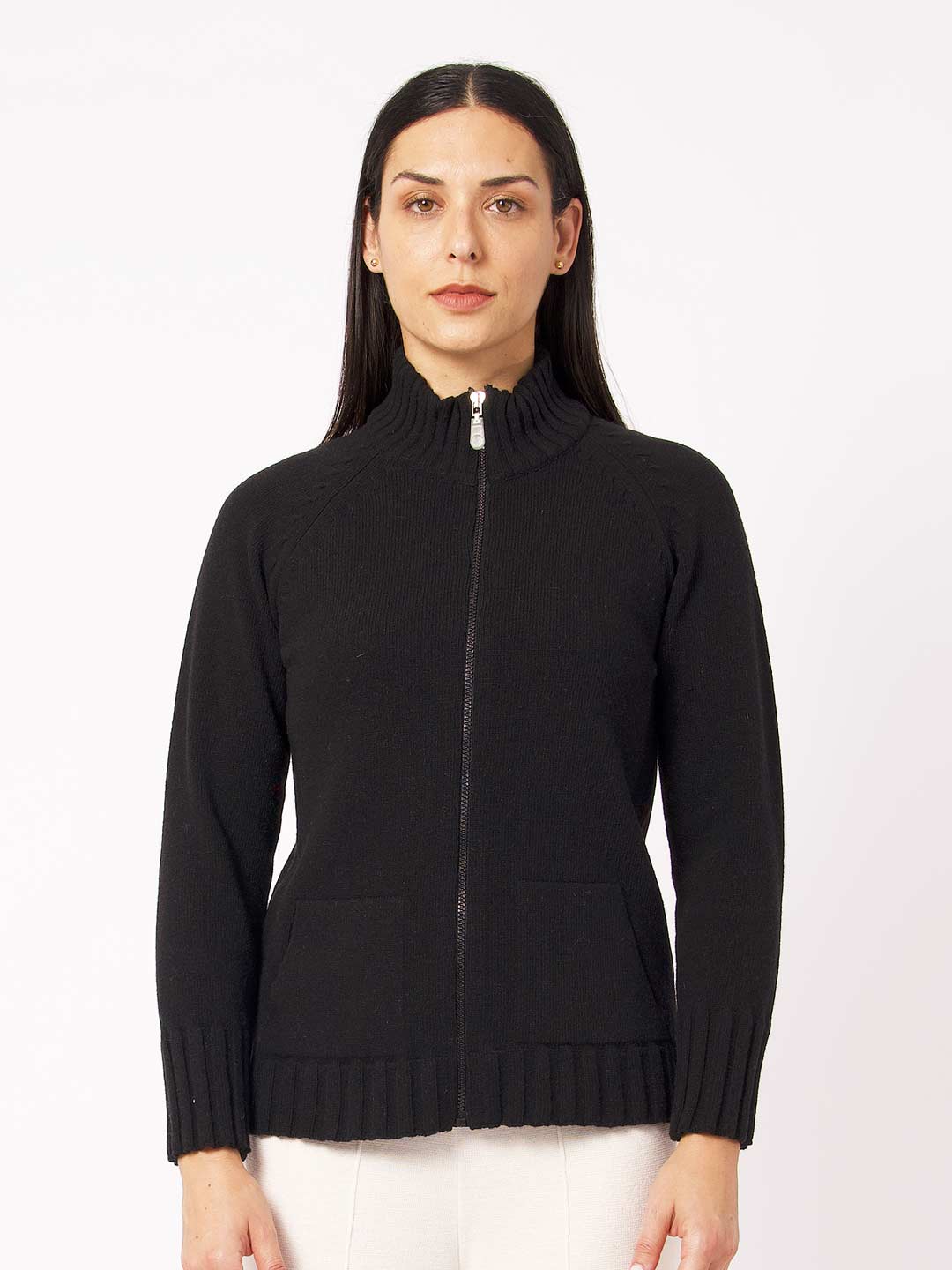 PretoCasaco em malha jersey com fecho em meia gola com punhos e cós canelado em lambswool de alta qualidade. Os bolsos chapados com abertura de lado evocam um estilo mais desportivo e prático. A alta percentagem de lã de ovelha confere-lhe características que só uma matéria prima natural pode oferecer. Leve, quente, confortável e macio, um desportivo, versátil e de alta qualidade. Produzido com fibras italianas esta casaco promete longevidade. A modelo mede 175cm e pesa 63kg, usa o tamanho S.