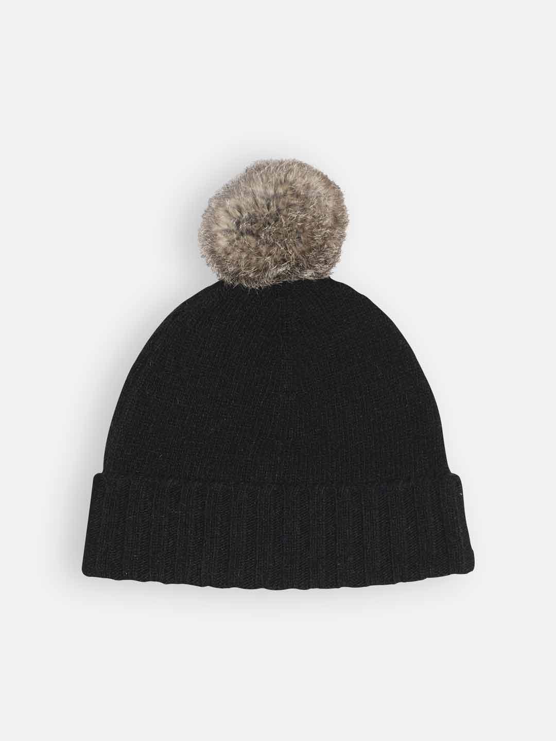 Gorros de Malha Achega - Gorro com pompom feminino em lambswool na cor preto