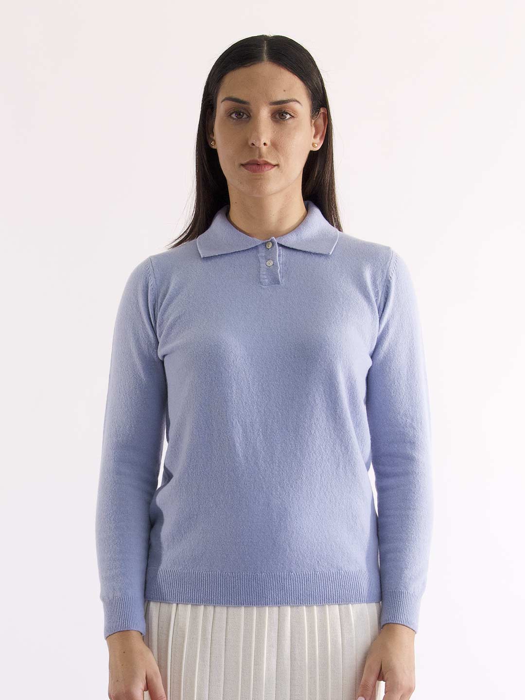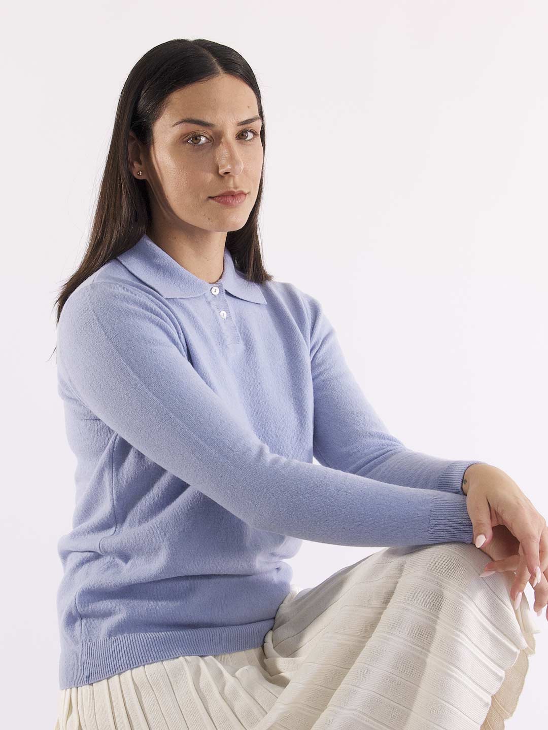 Polo em malha jersey com 2 botões em madrepérola natural em Lambswool de alta qualidade. A alta percentagem de lã de ovelha confere-lhe características que só uma matéria prima natural pode oferecer. Leve, quente, confortável e macia. Um básico clássico, versátil e de alta qualidade. Produzida com fibras italianas esta camisola promete longevidade. A modelo mede 175cm e pesa 63kg, usa o tamanho S.