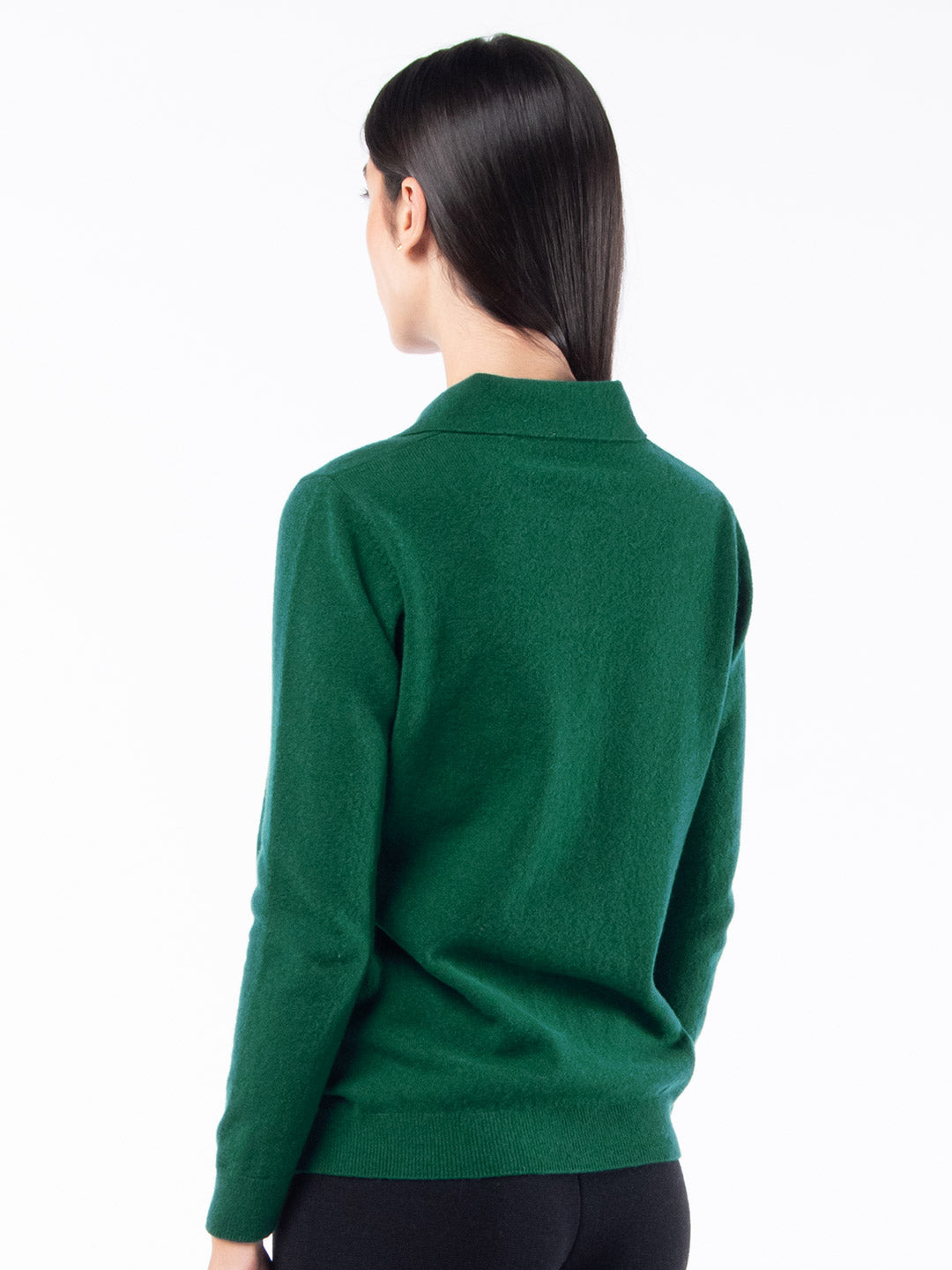 Verde GarrafaPolo em malha jersey com 2 botões em madrepérola natural em Lambswool de alta qualidade. A alta percentagem de lã de ovelha confere-lhe características que só uma matéria prima natural pode oferecer. Leve, quente, confortável e macia. Um básico clássico, versátil e de alta qualidade. Produzida com fibras italianas esta camisola em malha promete longevidade. A modelo mede 175cm e pesa 54kg, usa o tamanho S.